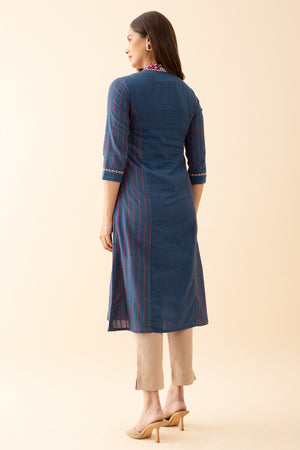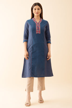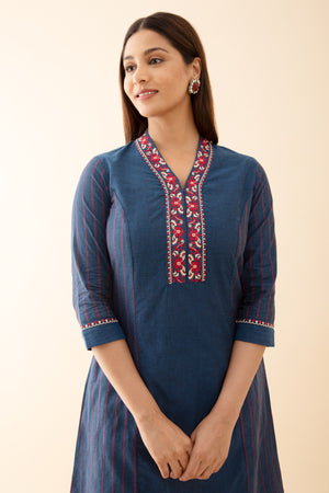Panelled A Line Kurta with Embroidered Neckline Blue
