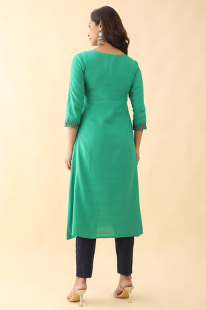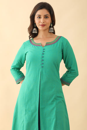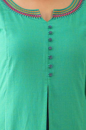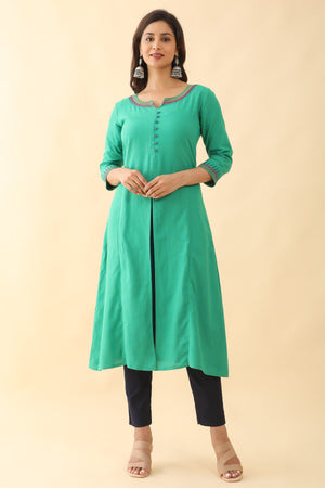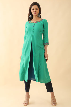 Jewelled Embroidered With Contrast Front Slit Kurta Green