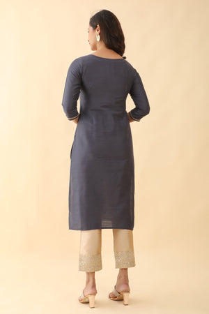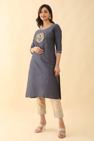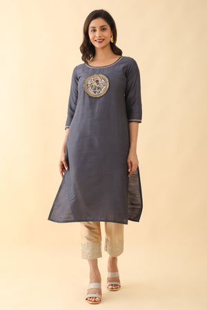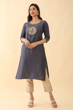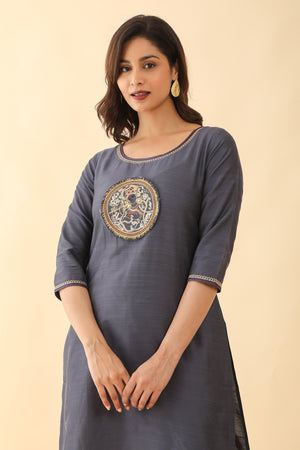 Mural Applique Embroidered Kurta Grey