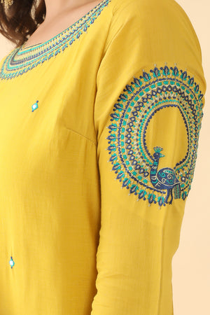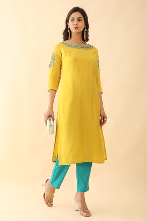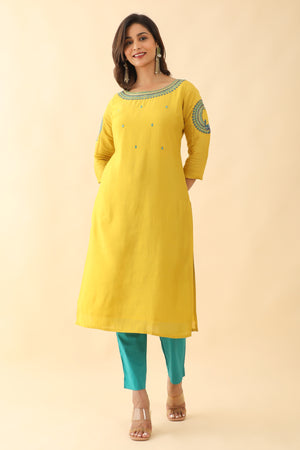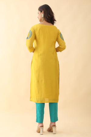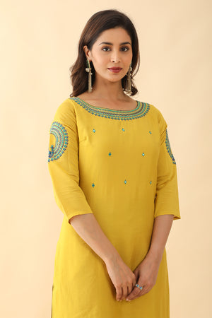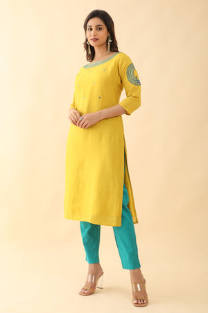 Geometric Motif Embroidery With Foil Mirror Butta Embellished Kurta Yellow