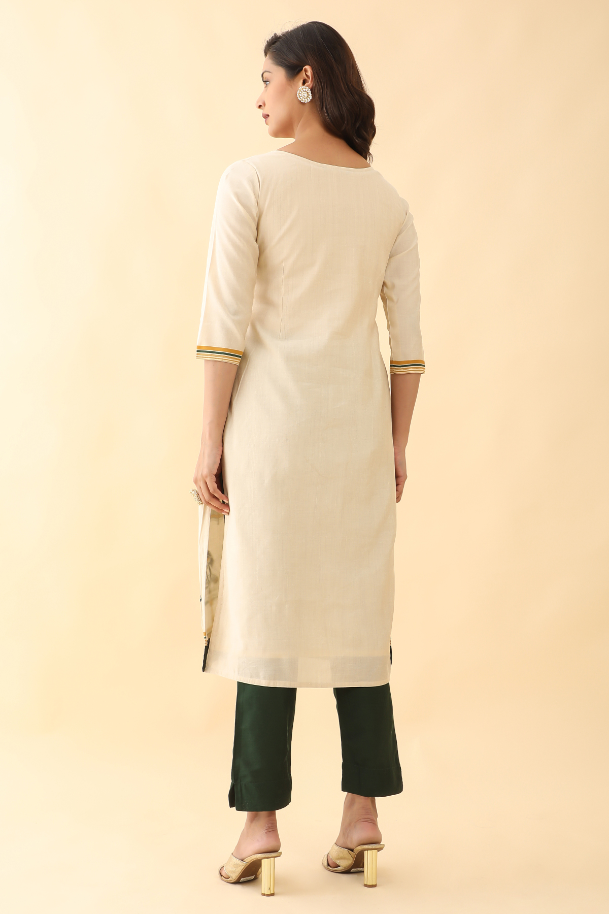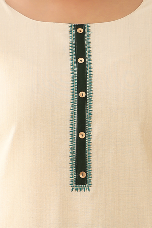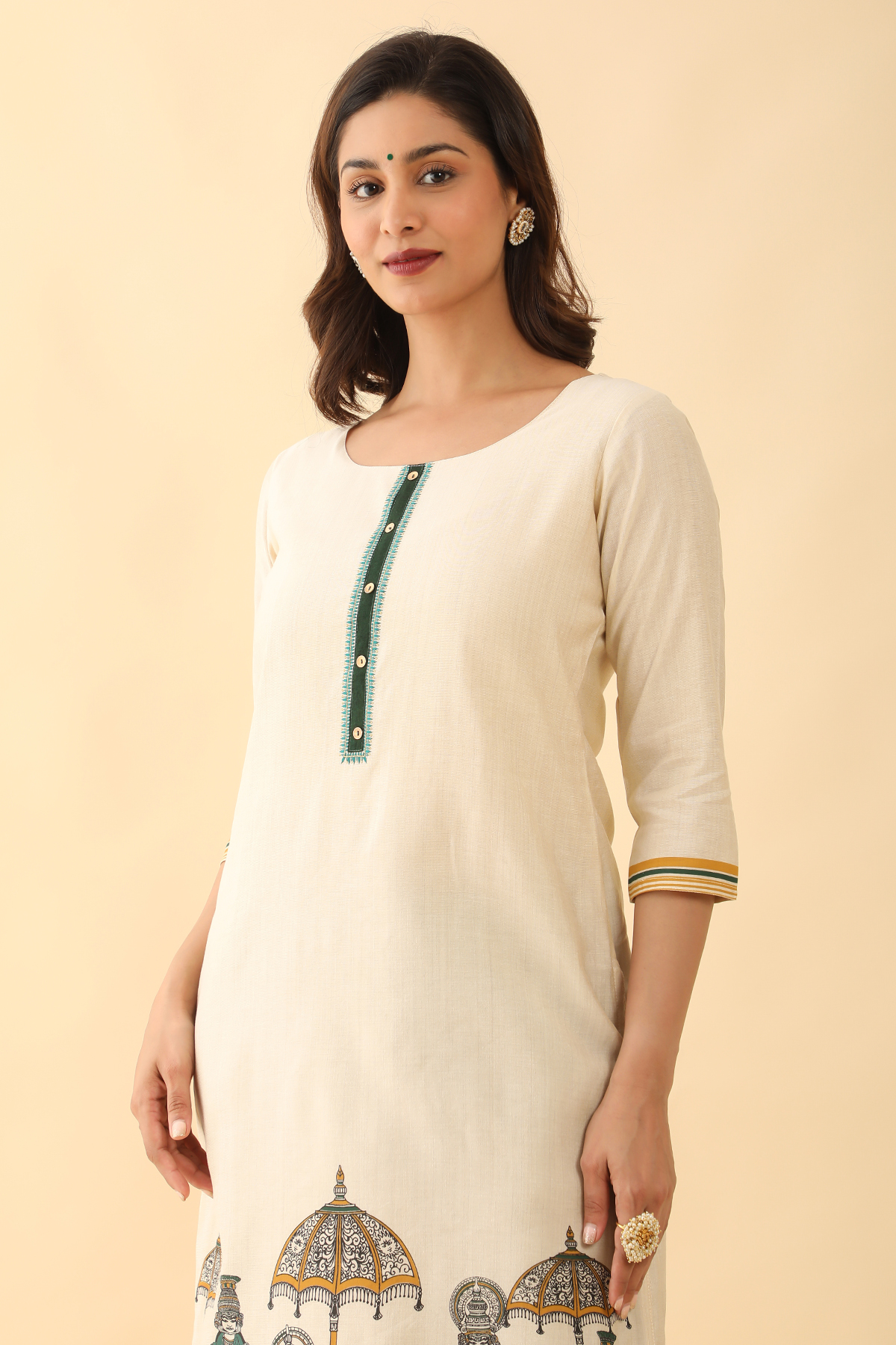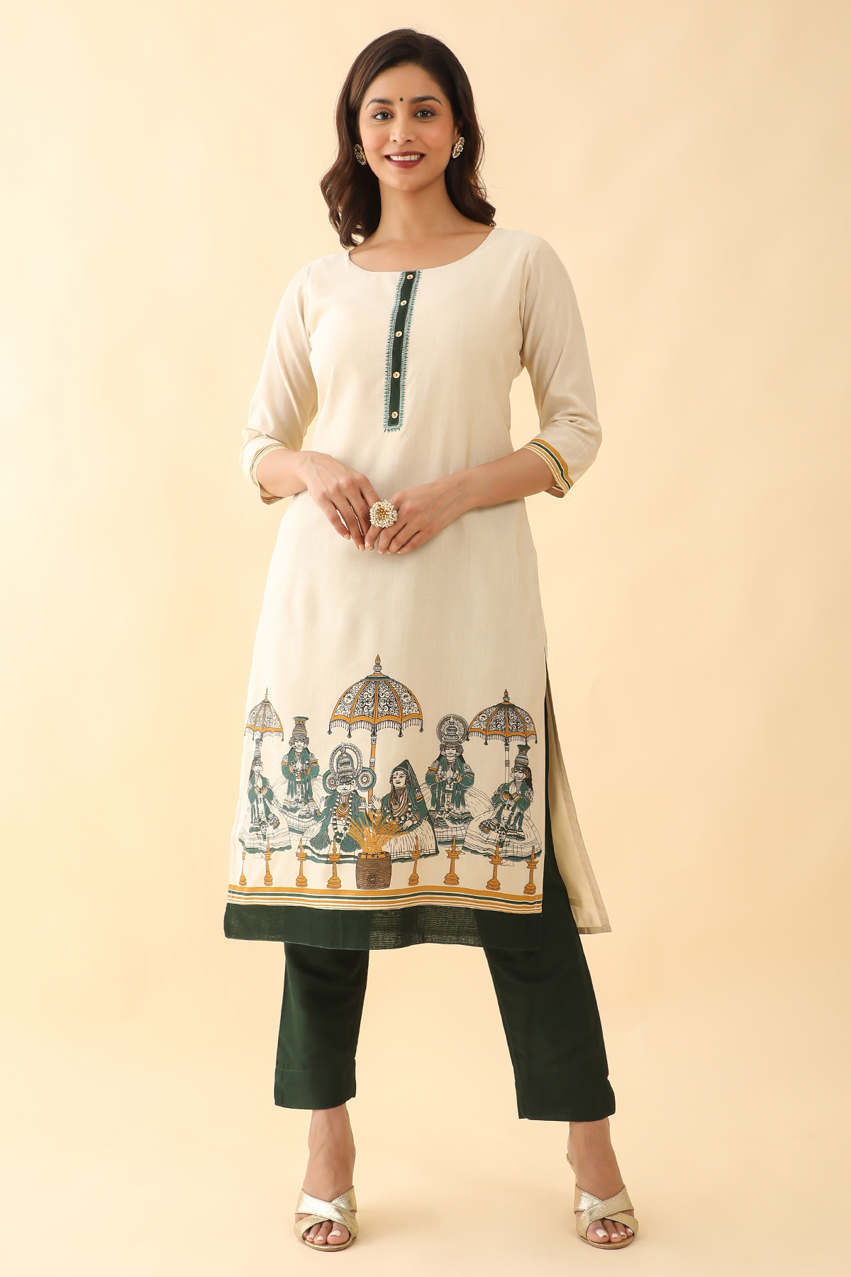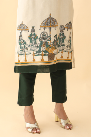 Geometric Motif Embroidered With Kathakali Inspired Placement Printed Kurta Green