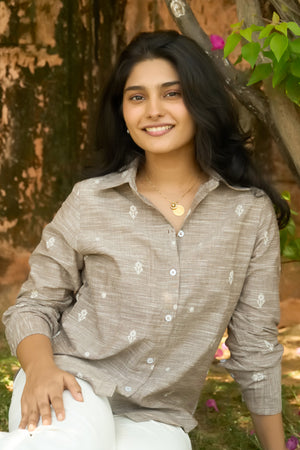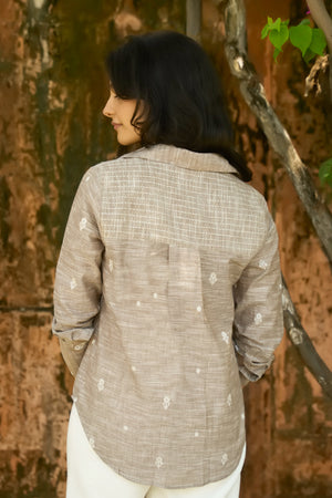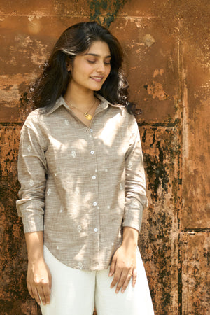 Brown Cotton Shirt with Ikkat Design For Casualwear