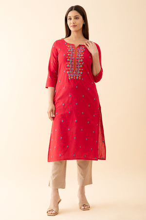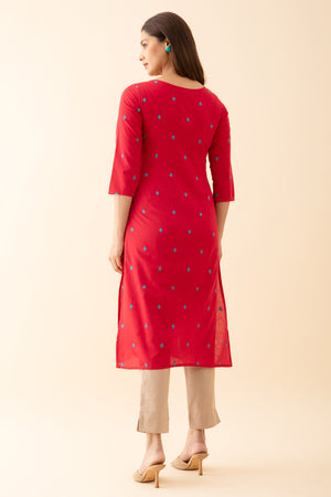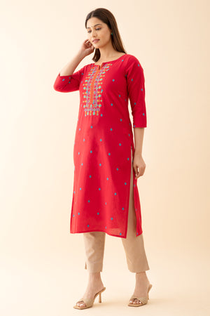 Dobby Weave kurta with Contrast Yoke Embroidery Red