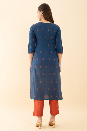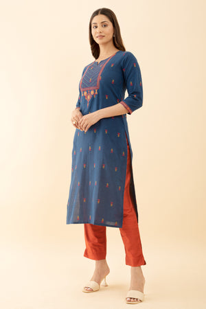 Blue Embroidered Printed Dobby Kurta Stunning Design