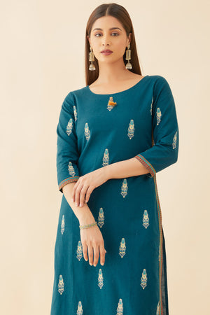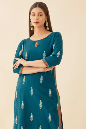 All Over Geometric Motif Printed Kurta Blue