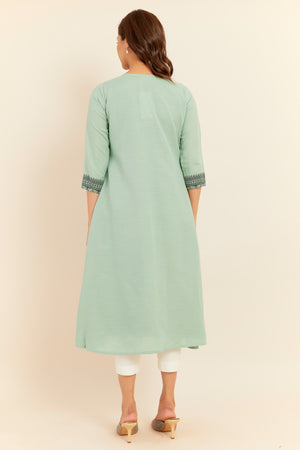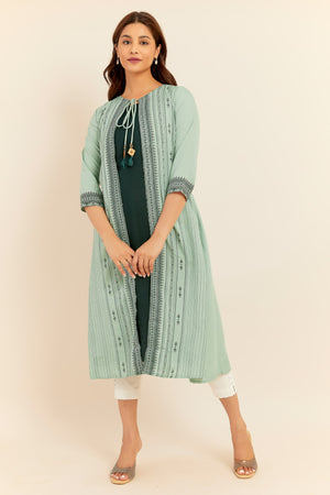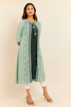 Geometric Pattern With Contrast Over Coat Kurta Green