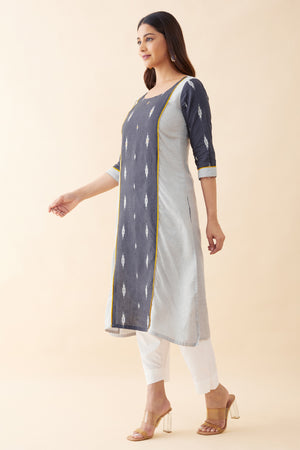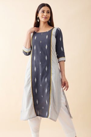 Ikkat Panelled Kurta - Grey