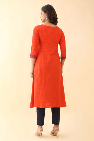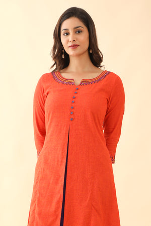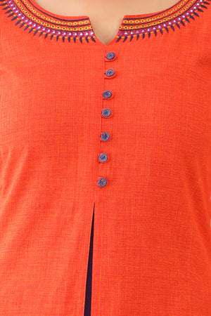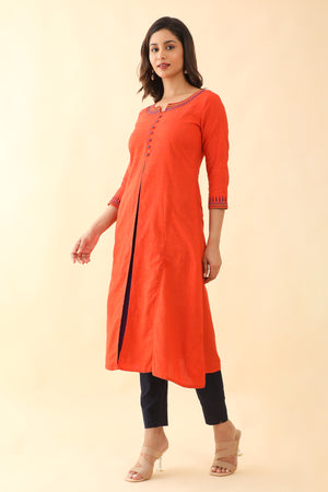 Jewelled Embroidered With Contrast Front Slit Kurta Orange