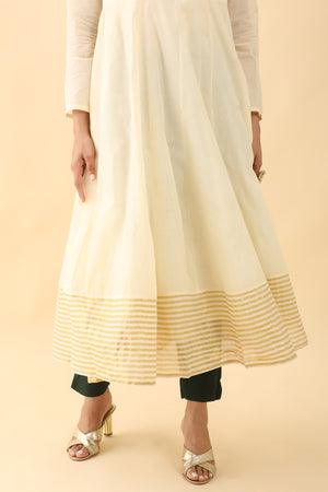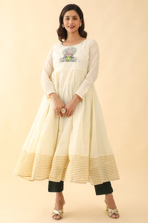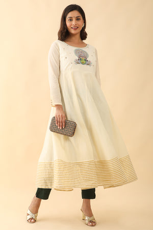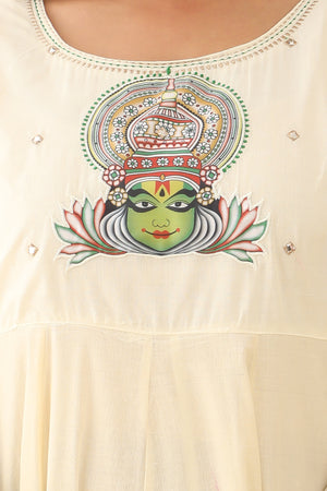 Kathakali Motif Applique With Foil Mirror Embellished A line Kurta Off White