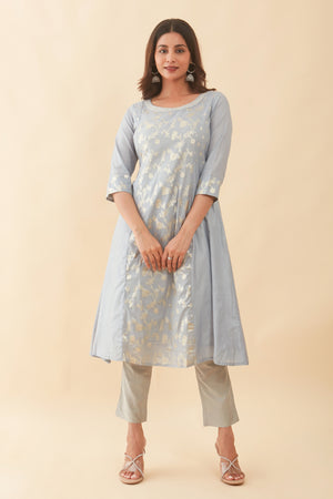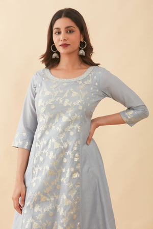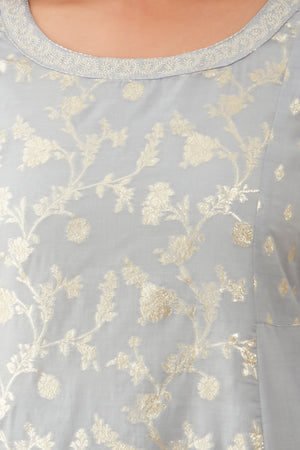 Floral Embroidered With Silver Brocade Panelled Kurta Grey