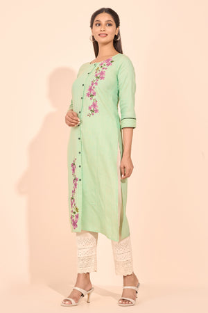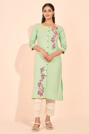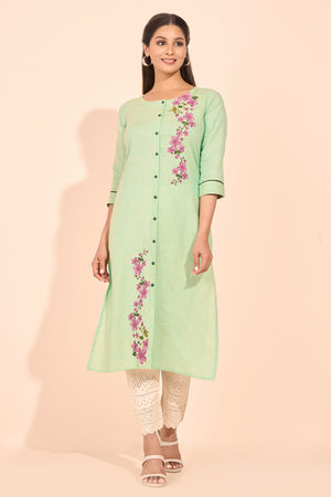 Floral Placement Printed Kurta - Green