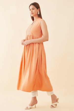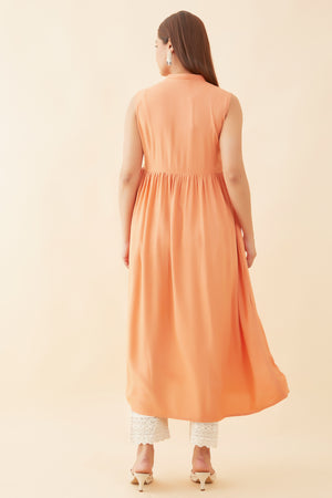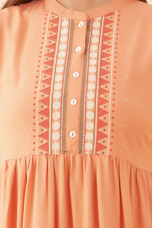 Geometric Motif Embroidered Kurta Peach