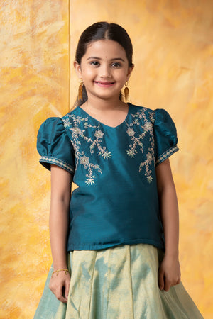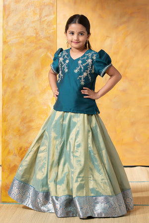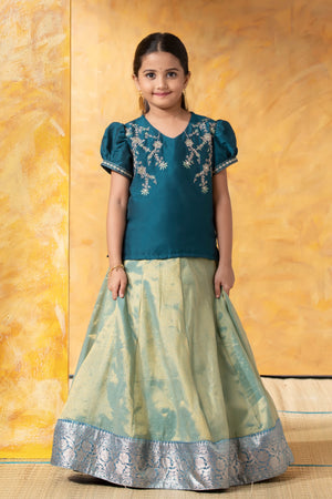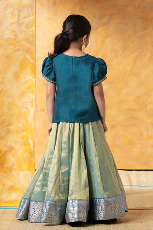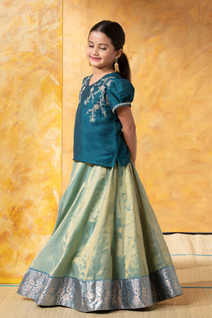 Green Shimmer Circular Kids Skirt with Brocade Border