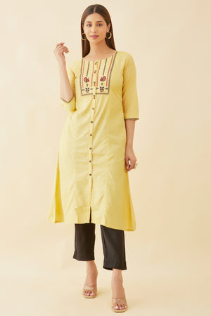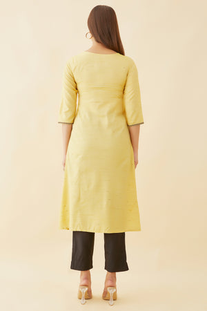 Peacock Placement Geometric Embroidered Kurta Yellow