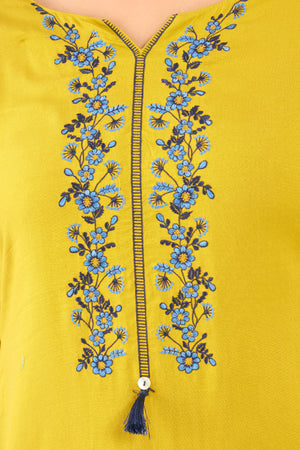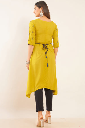 Floral Embroidered A Line Tie waist Kurta Yellow
