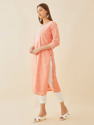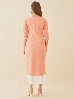 Foil Mirror Embellished With Geometric Embroidery Dobby Weave Kurta Peach