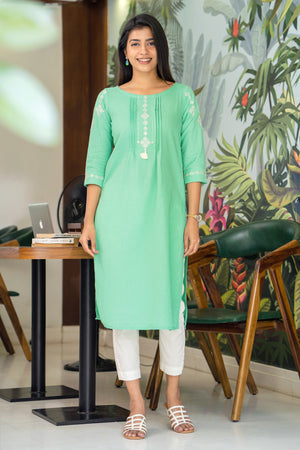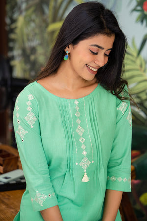 Foil Mirror Embellished With Geometric Embroidered Kurta Green
