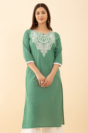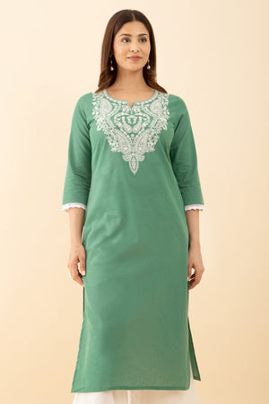 Paisley Embroidered Green Kurta Pastel Solid Design