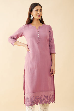 Floral Cut Work Kurta - Pink