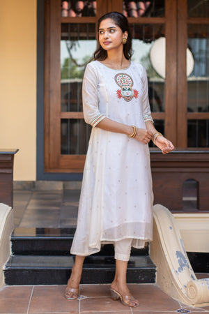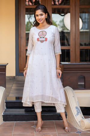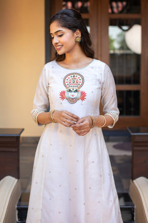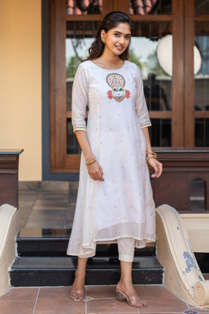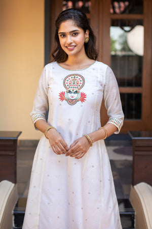Kathakali Motif Placement Embroidered Asymmetric Kurta White