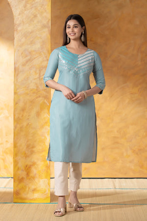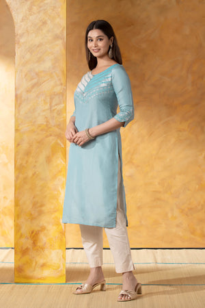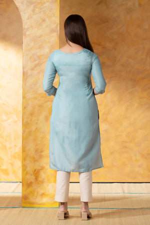 Sky Blue Straight Kurta with Brocade Work