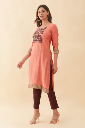 Wash Care – Hand wash separately in cold water with mild detergents. Do not bleach/wring/iron on embellishments. Dry in shade.