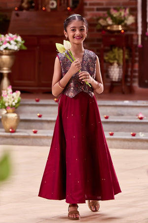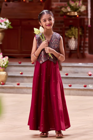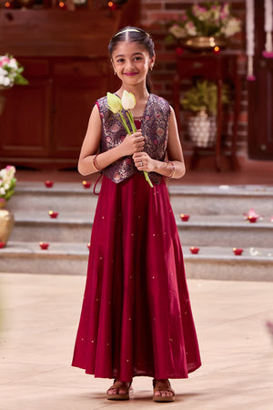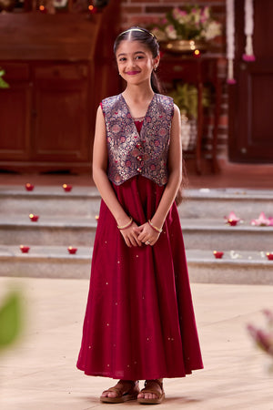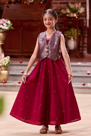 Maroon Kids Anarkali with Navy Blue Brocade Jacket