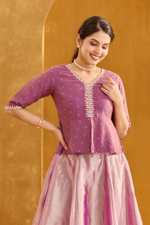 Mauve Peplum Crop Top with Shimmery Embellished Skirt Set