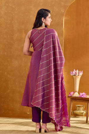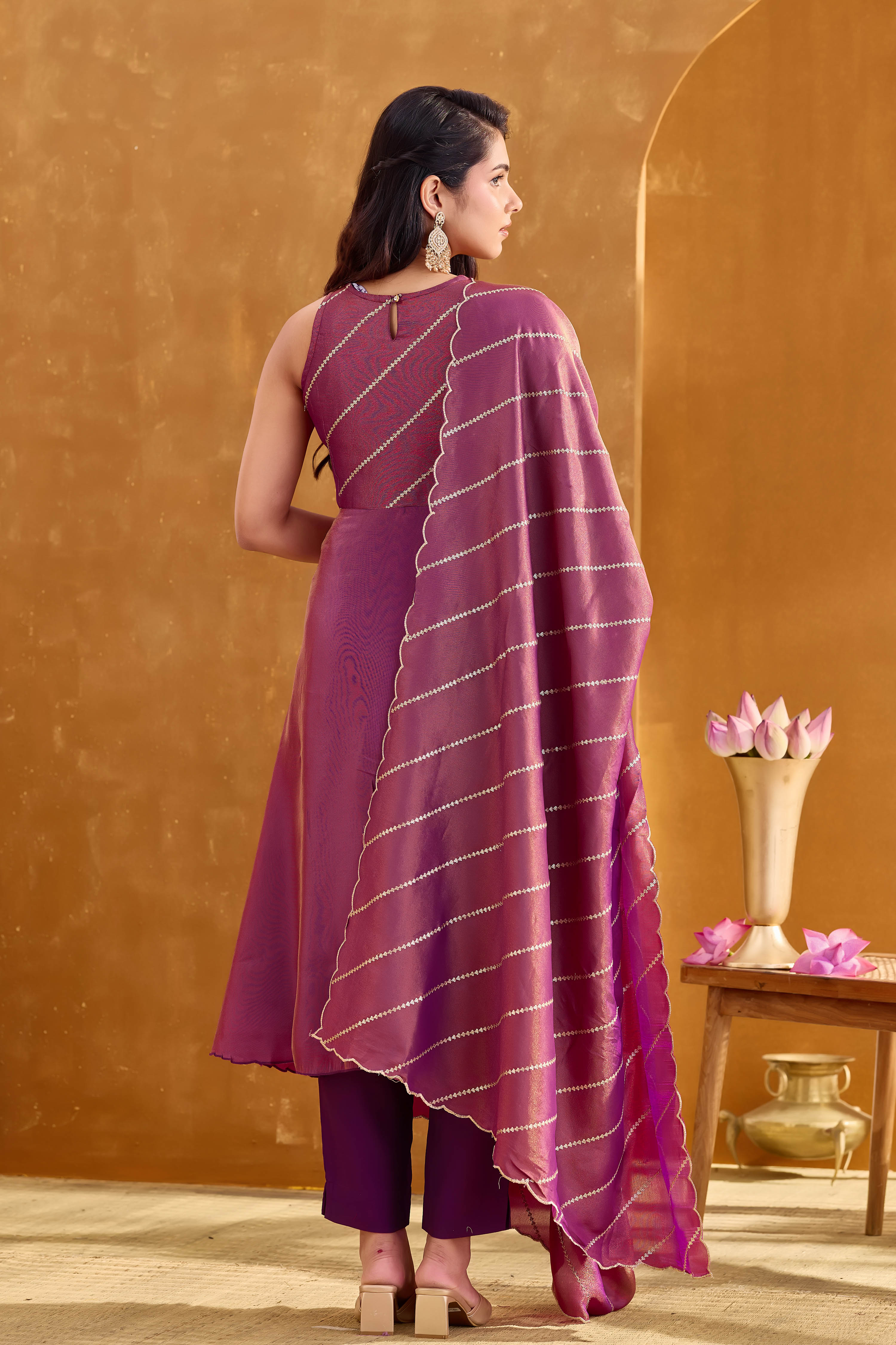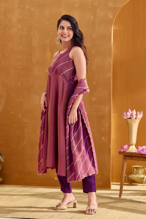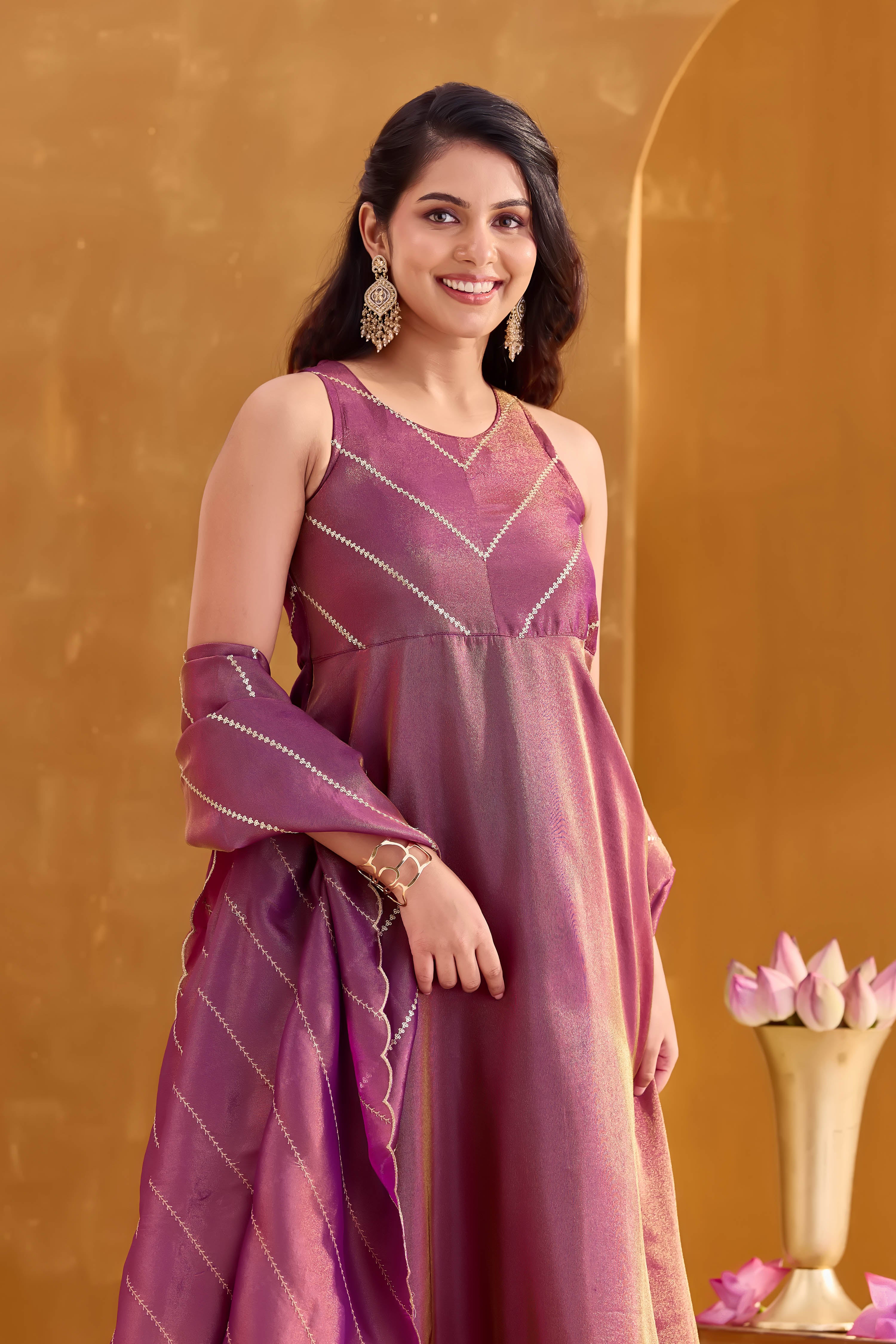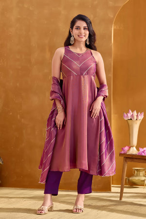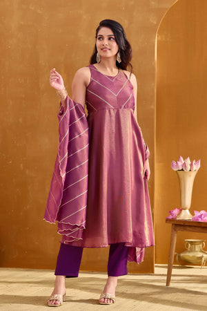 Mauve & Purple Kurta Set with Golden Sequin Work and Tissue Dupatta