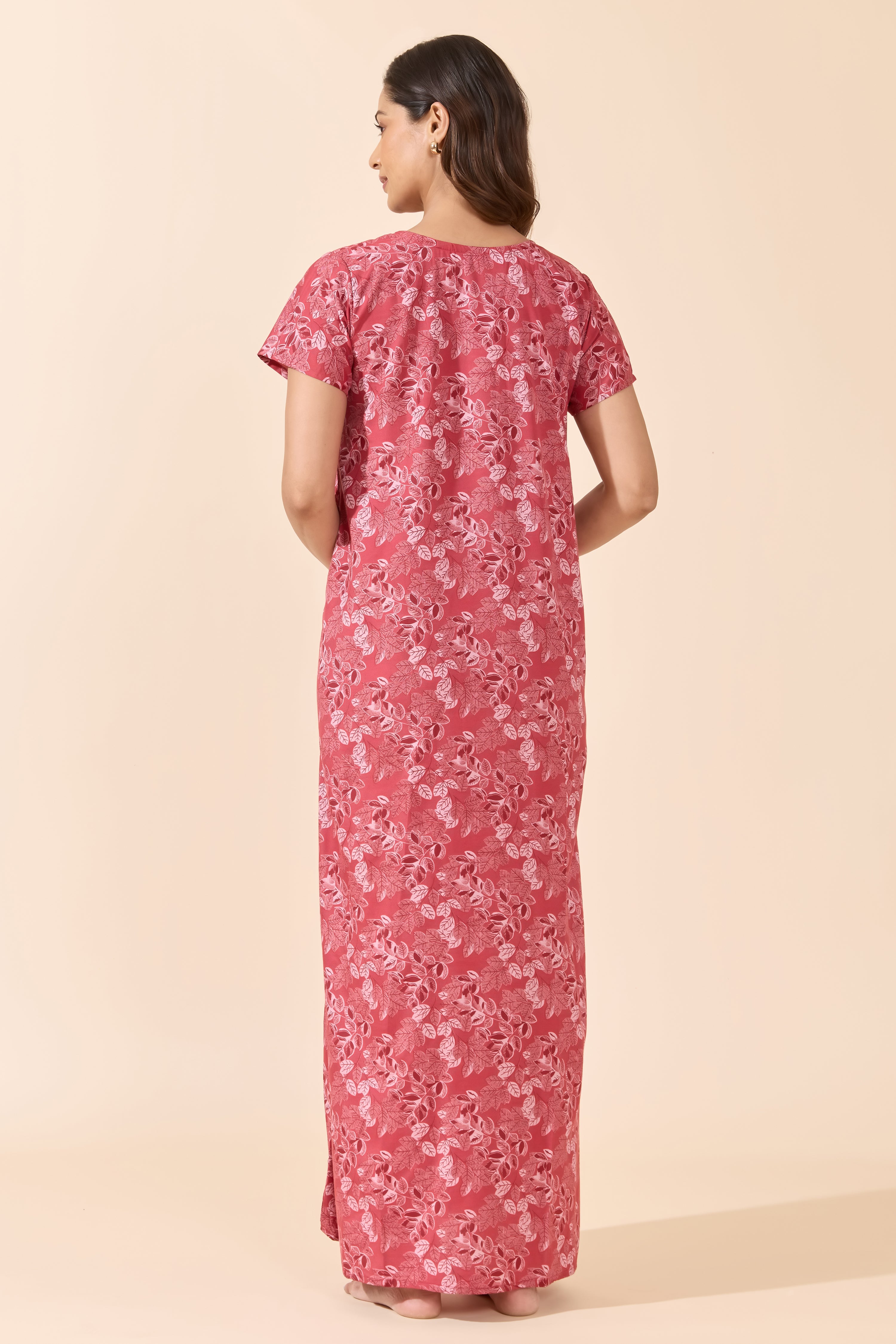 Make a statement in this red foliage print cotton nighty featuring a delicate lace yoke and functional button front. Breathable fabric and a relaxed fit for stylish everyday comfort.