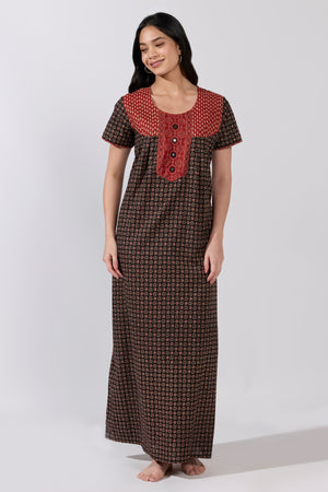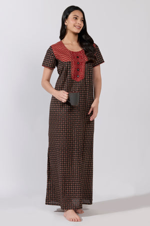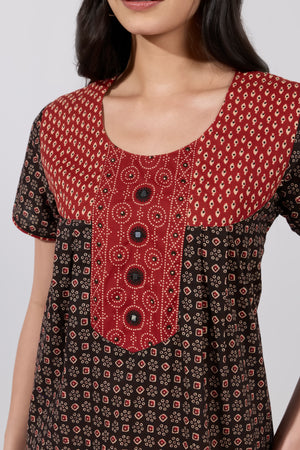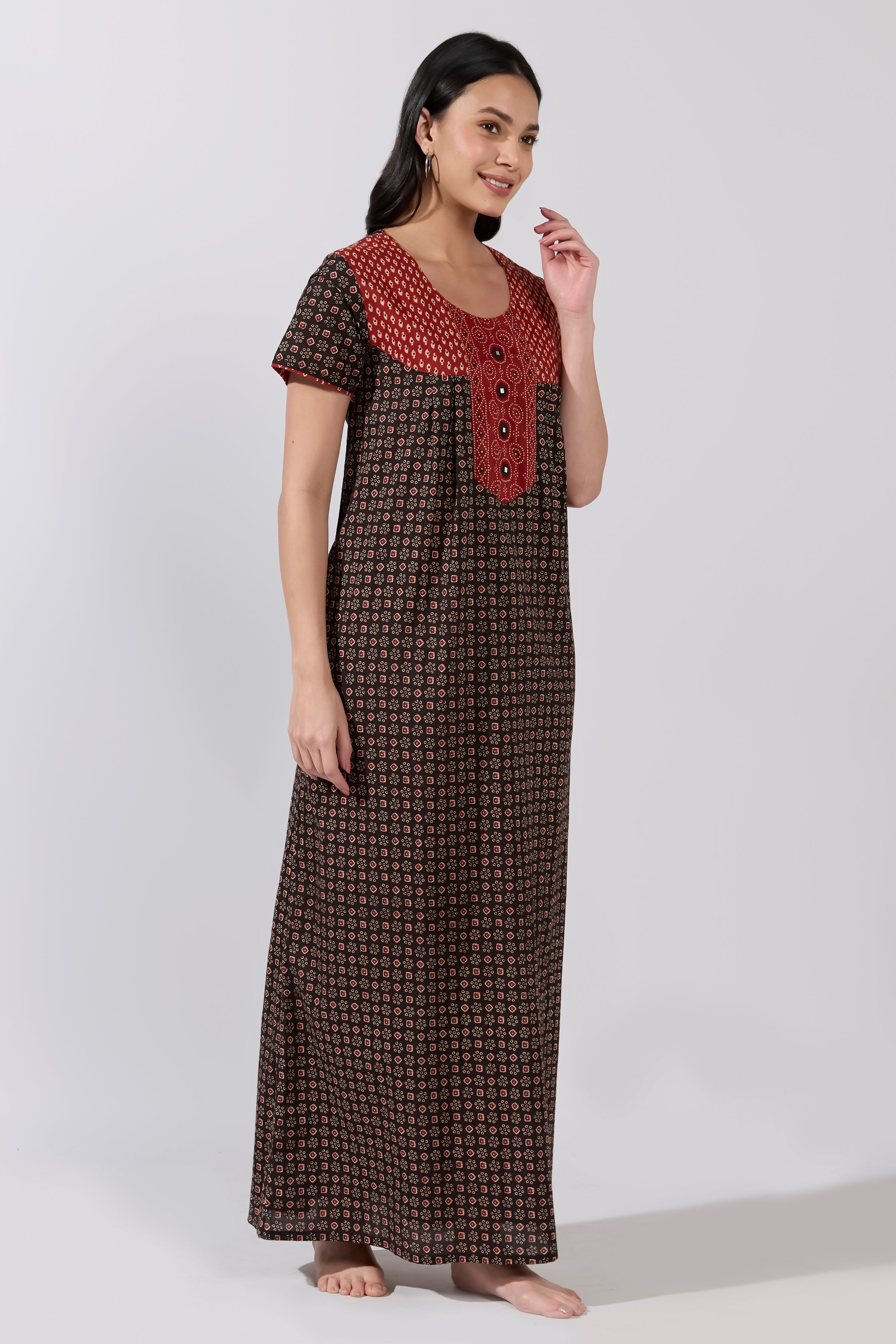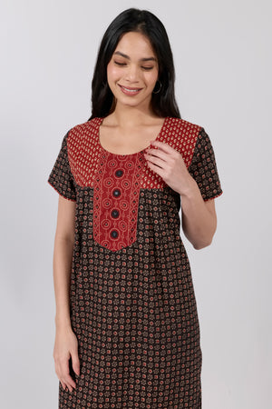 Embrace timeless tradition with this black Bandhani print cotton nighty. Crafted in breathable cotton with a relaxed fit, it’s perfect for everyday comfort and effortless nightwear style.