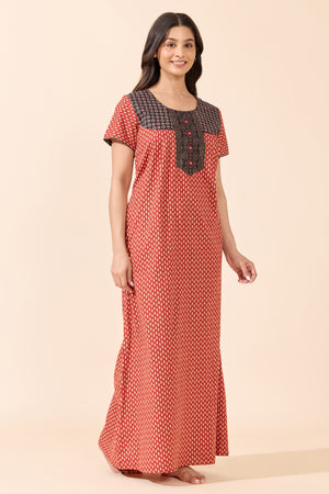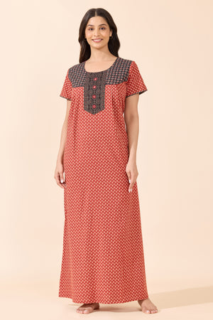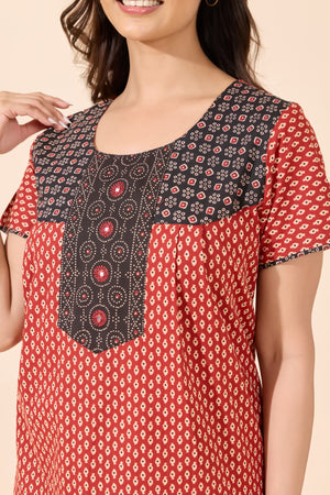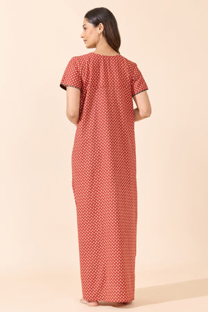 Maroon Bandhani Print Cotton Nighty