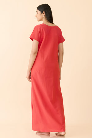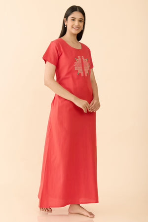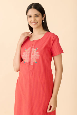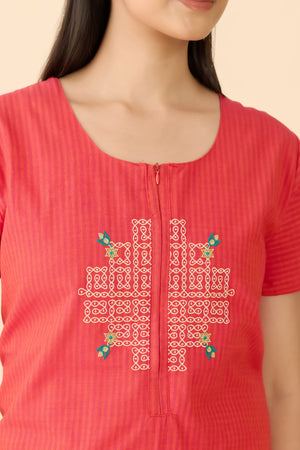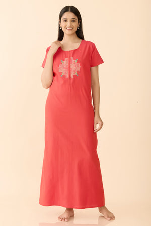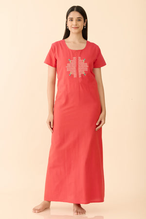 Nagri Orange Cotton Nighty wih Kolam Embroidered Yoke