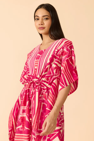 PINK ABSTRACT COTTON KAFTAN NIGHTWEAR