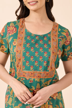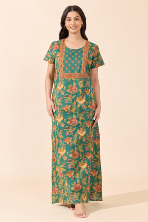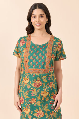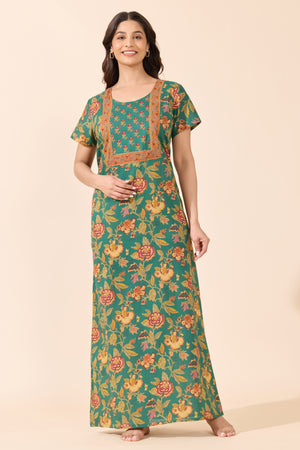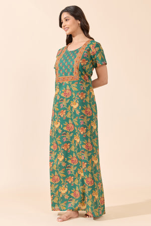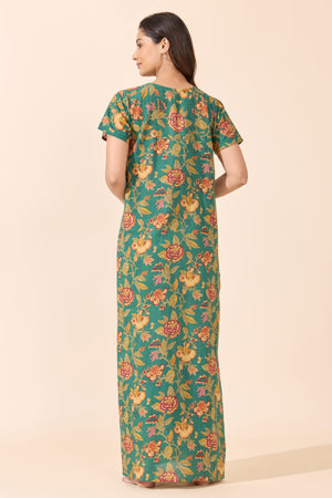Green Floral Printed Cotton Nightwear
