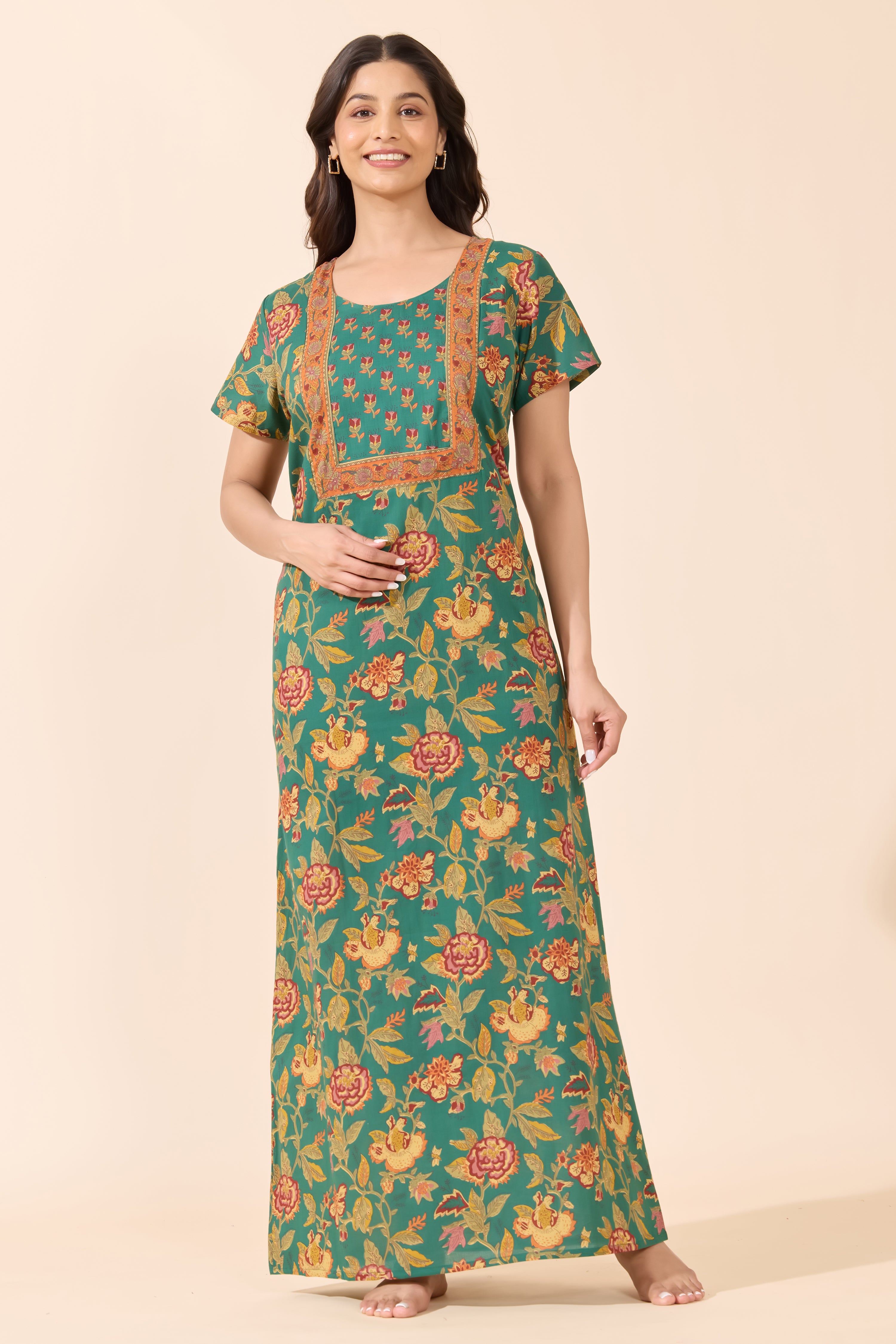 Relax in style with this green floral printed cotton nightwear. Soft, breathable, and perfect for cozy nights or unwinding at home.