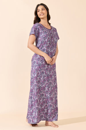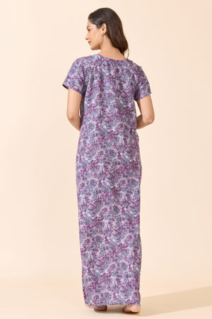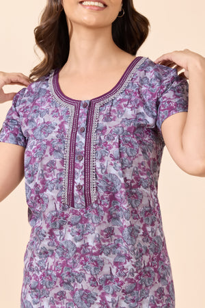 Purple Floral Printed Cotton Nightwear