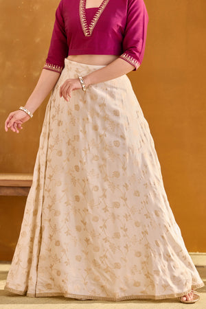 Off - White Floral Brocade Skirt with Decorative Border ( Only Skirt)