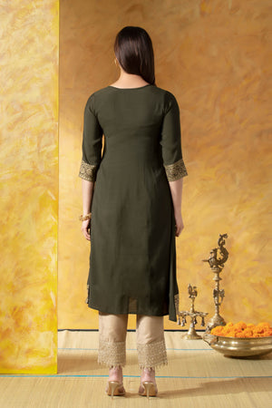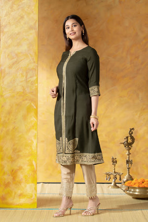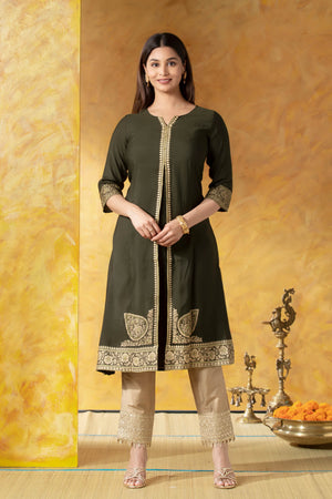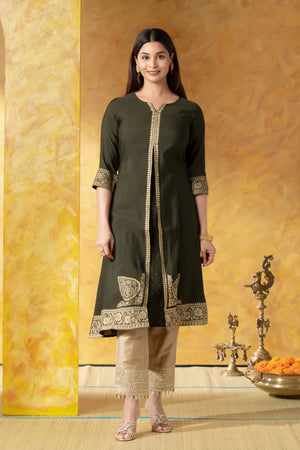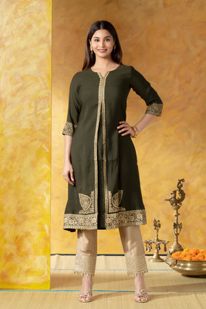 Olive Green A-Line Kurta with Brocade Work