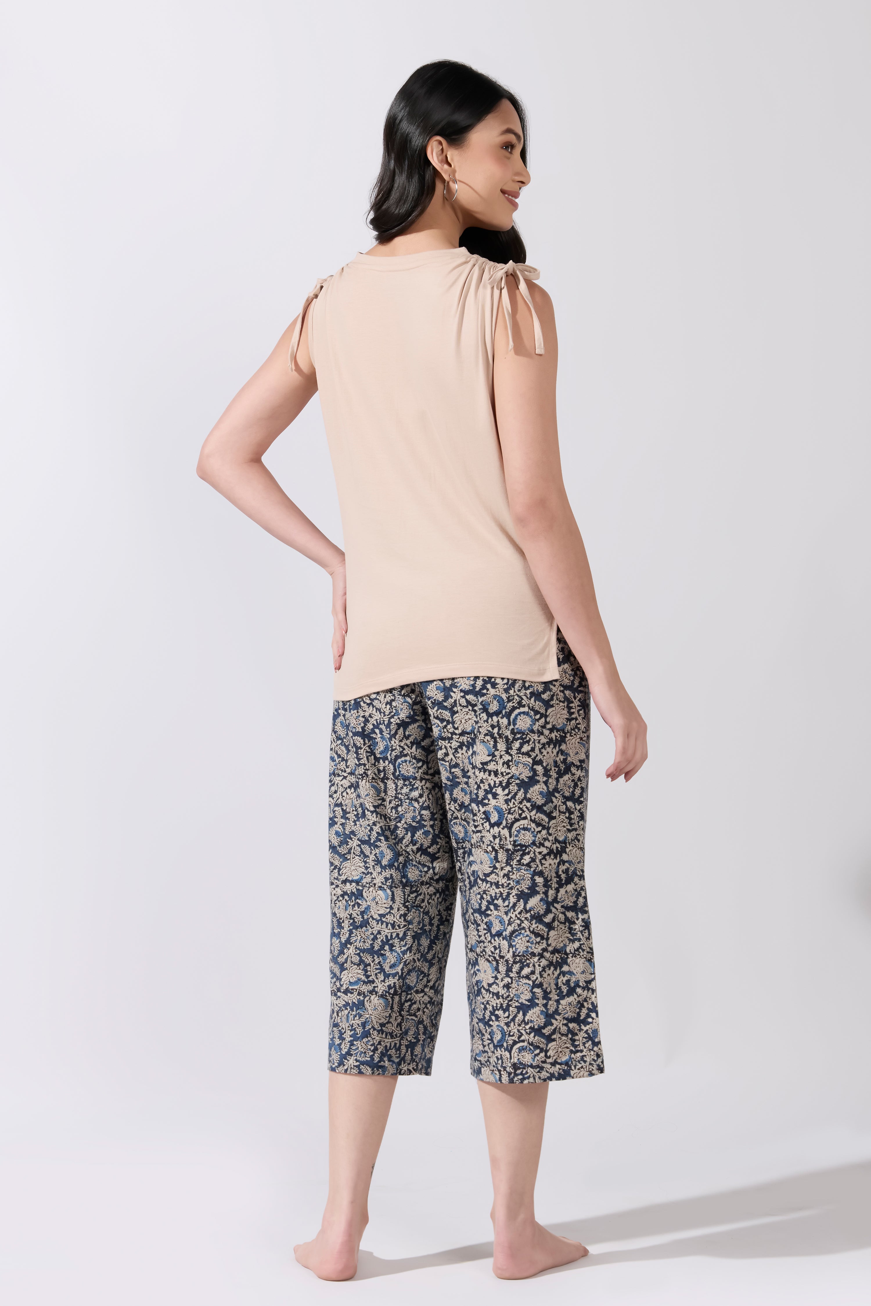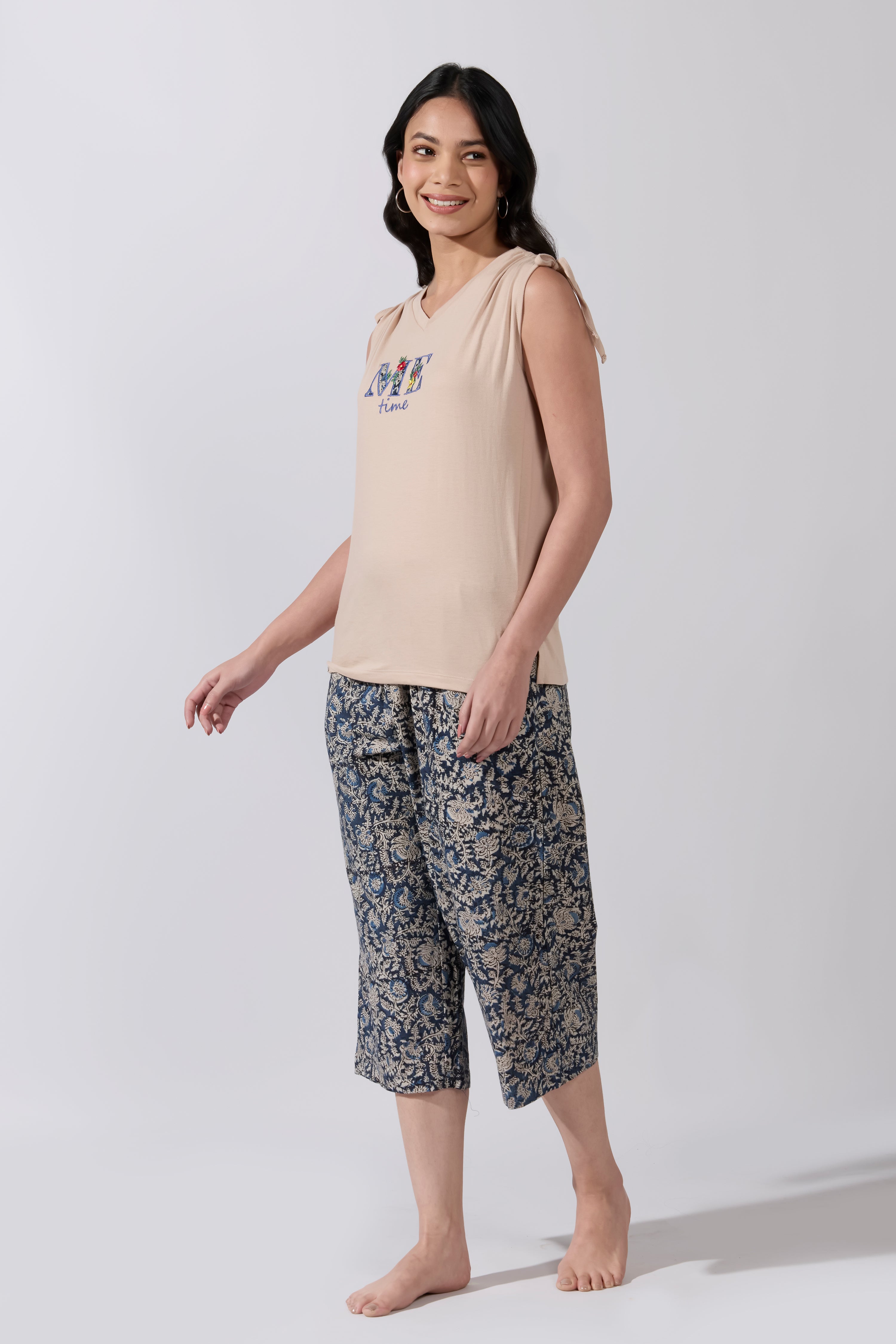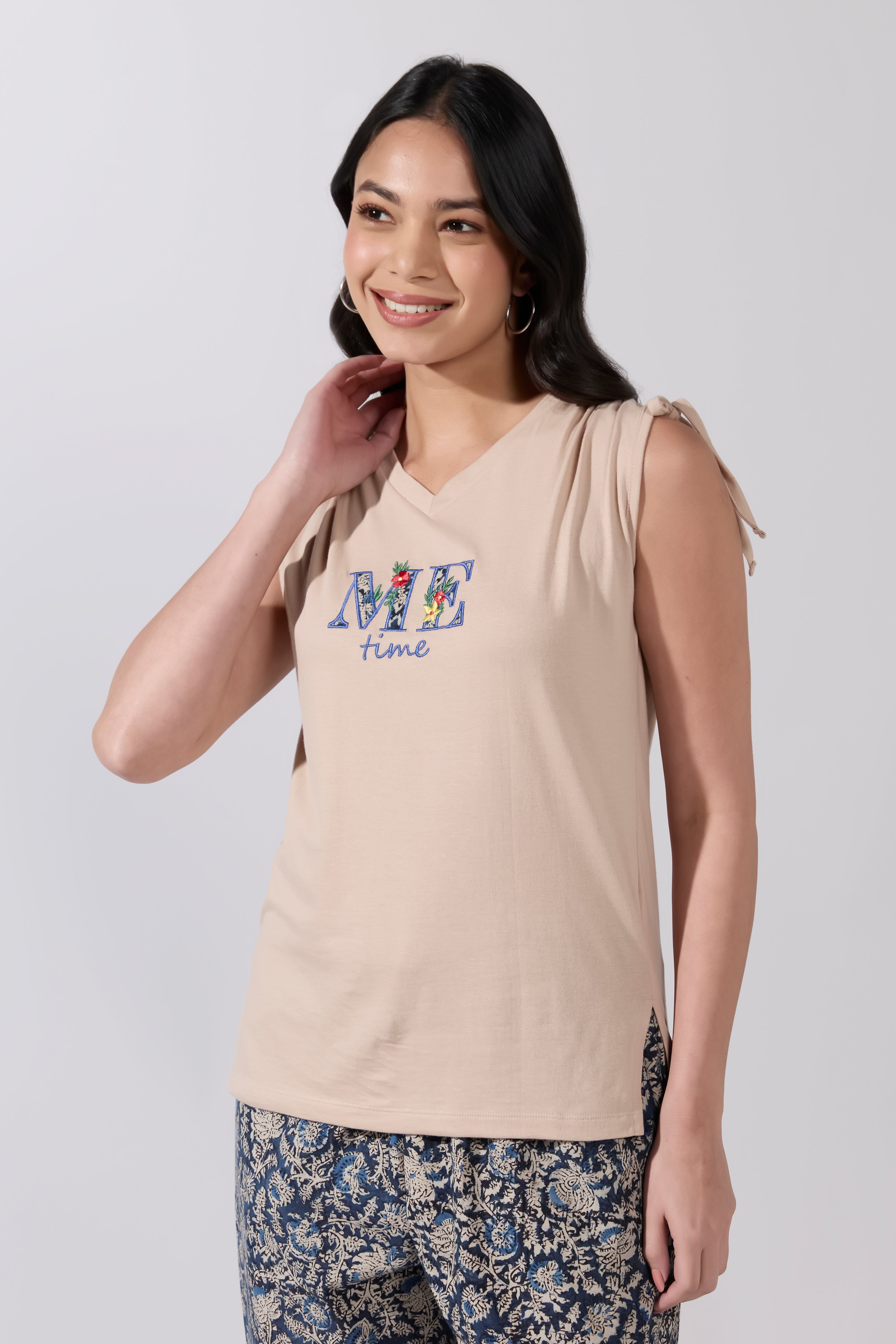 ME Time Printed Tank T-Shirt with Tie up & Kalamkari Printed Pyjama Set