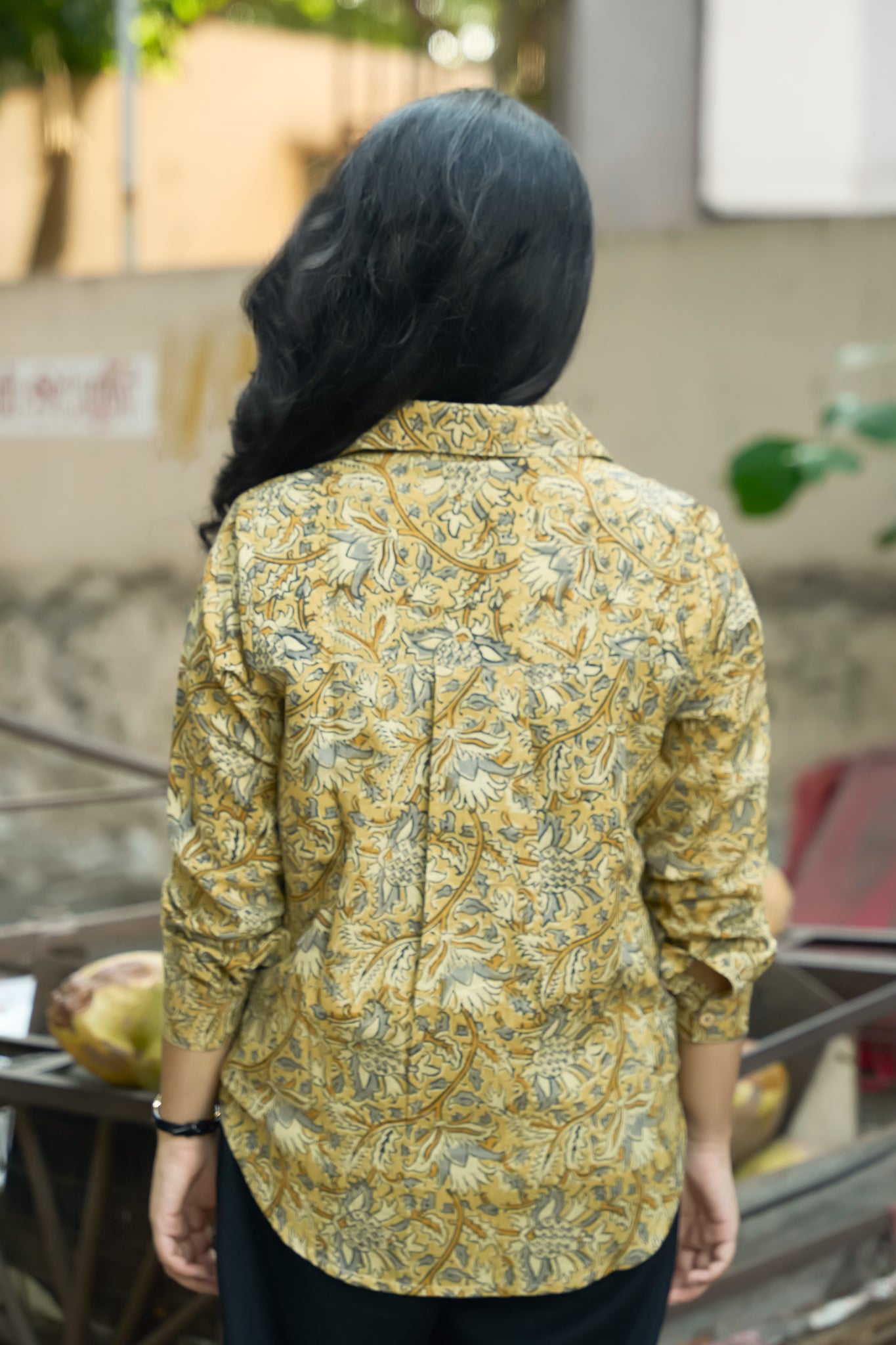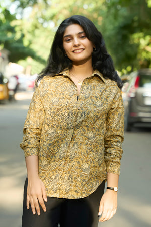 Mustard Cotton Shirt with Kalamkari Design For Casualwear