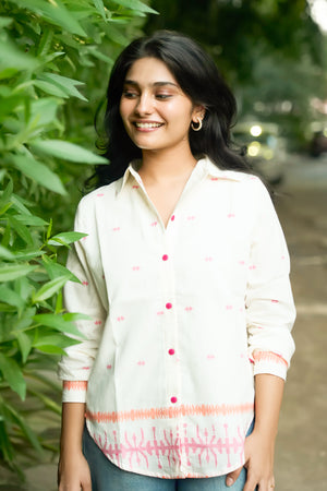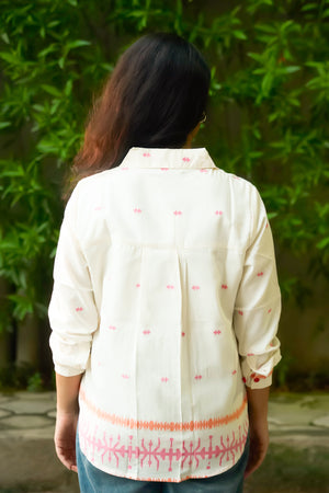 Off-White Cotton Shirt with Two-Colored Jamdani Design