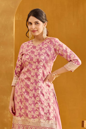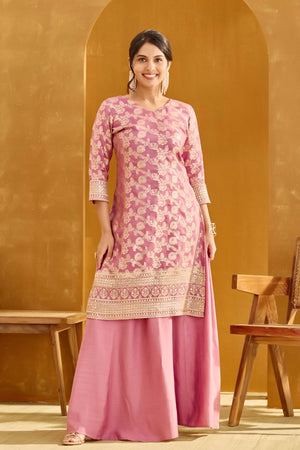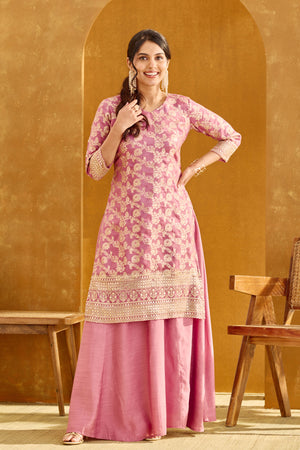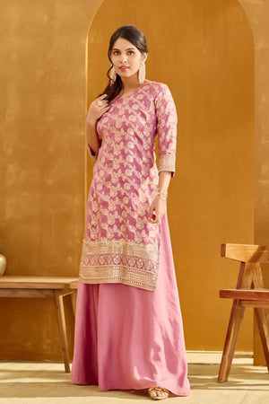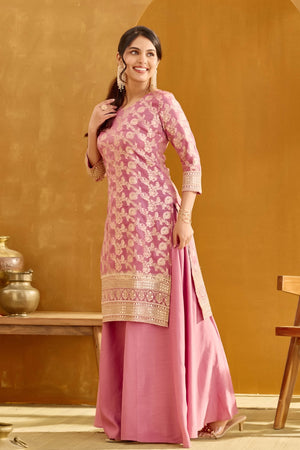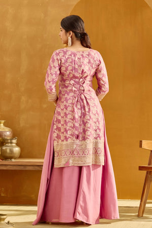 Dusty Rose Pink Long Top Skirt Set with Sequin & Brocade Design